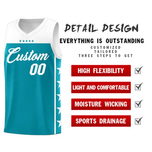 Custom Aqua White Personalized Star Pattern Sports Uniform Basketball Jersey