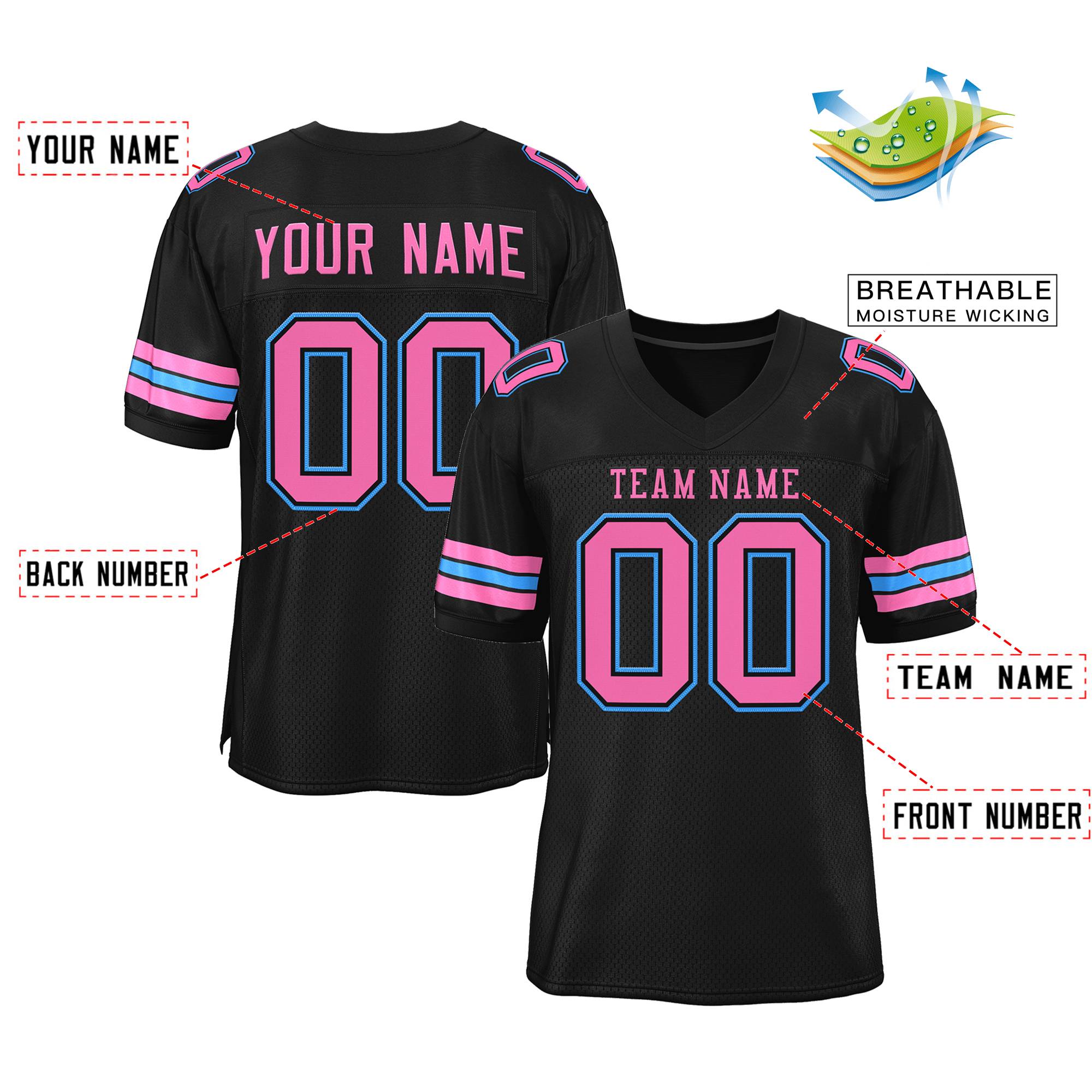 Custom Black Pink-Powder Blue Classic Style Authentic Football Jersey