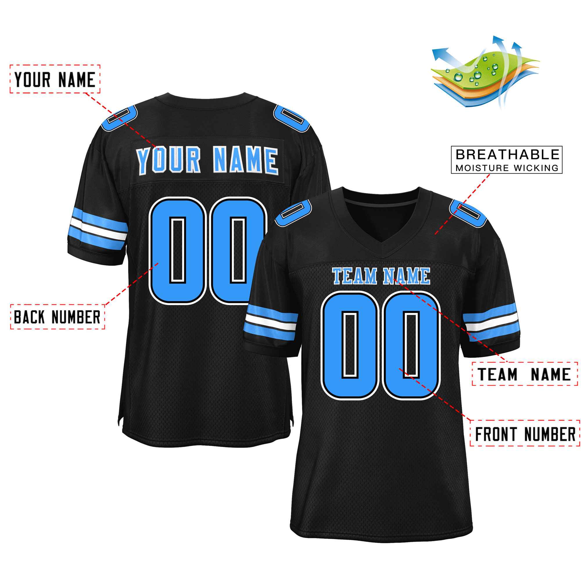 Custom Black Powder Blue-White Classic Style Mesh Authentic Football Jersey