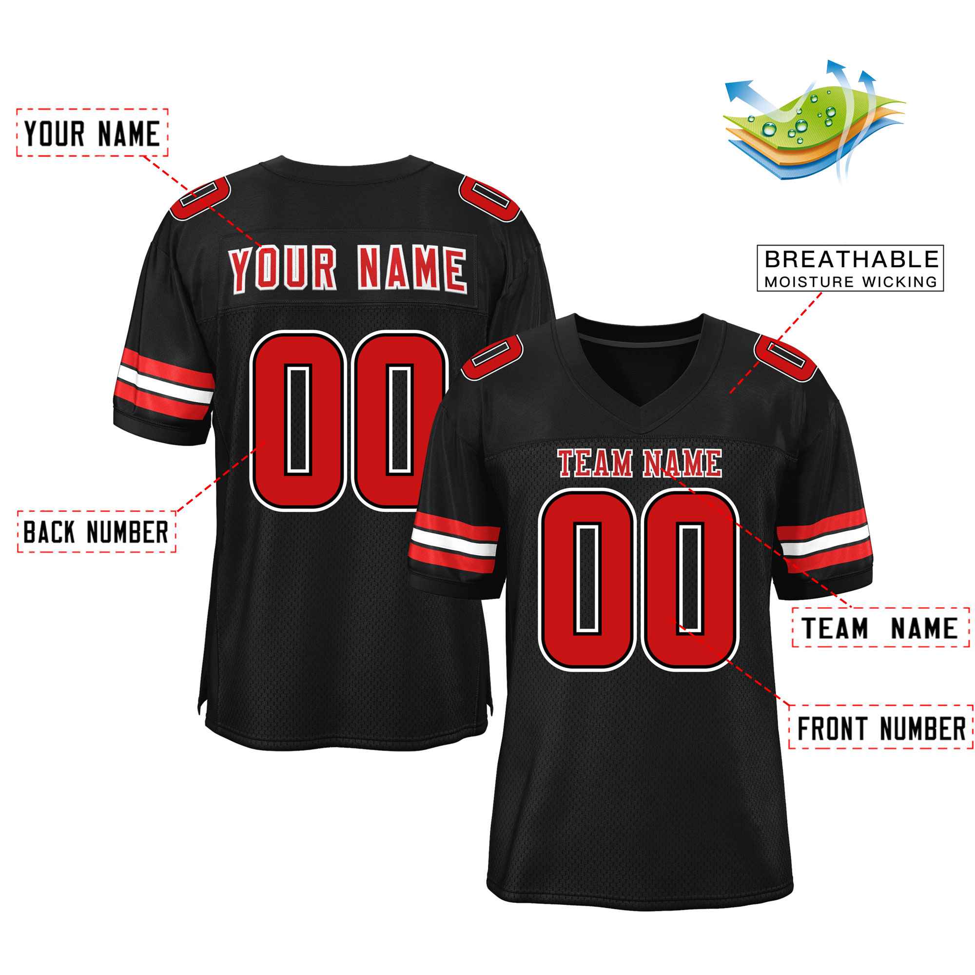 Custom Black Red-White Classic Style Mesh Authentic Football Jersey
