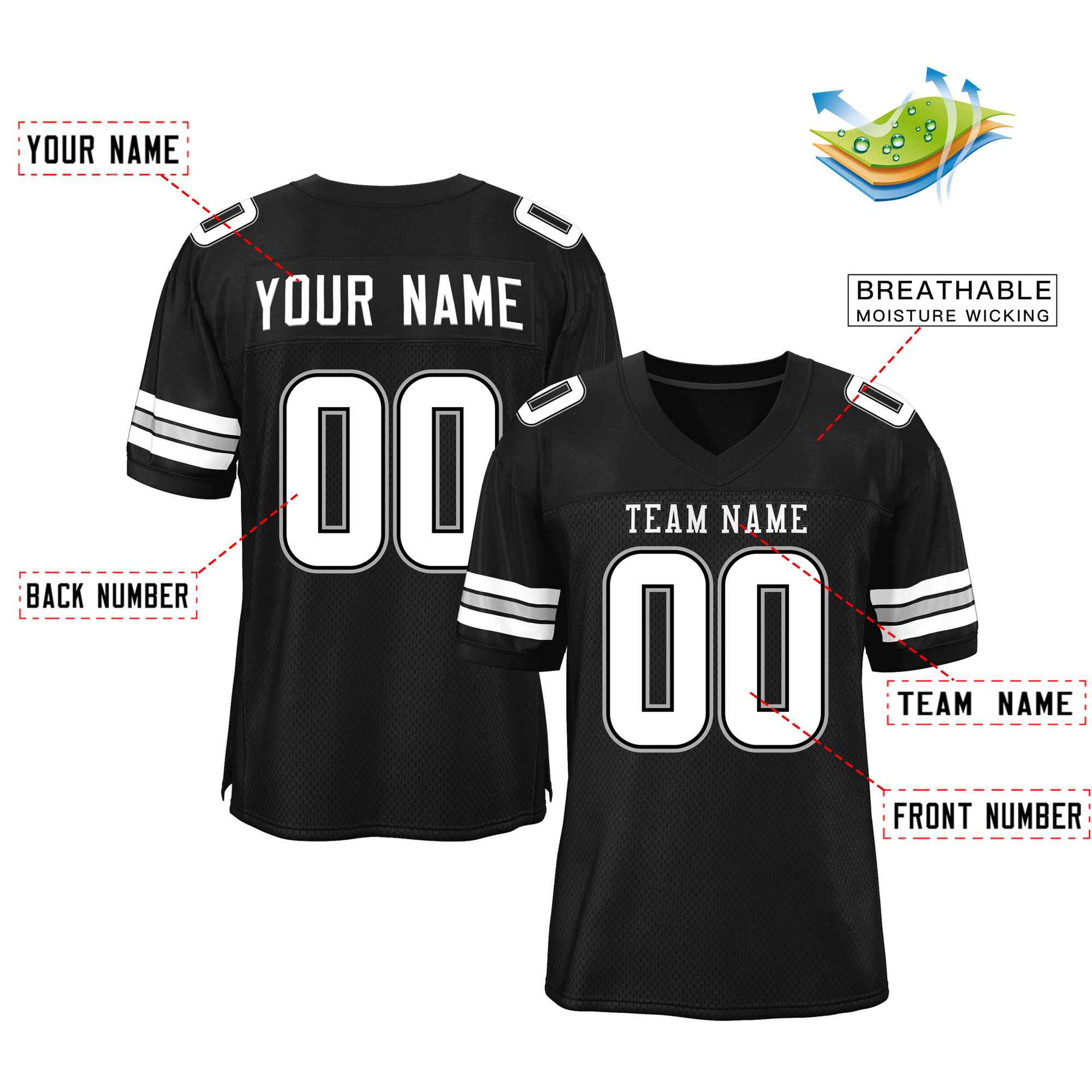 Custom Black White-Gray Classic Style Mesh Authentic Football Jersey