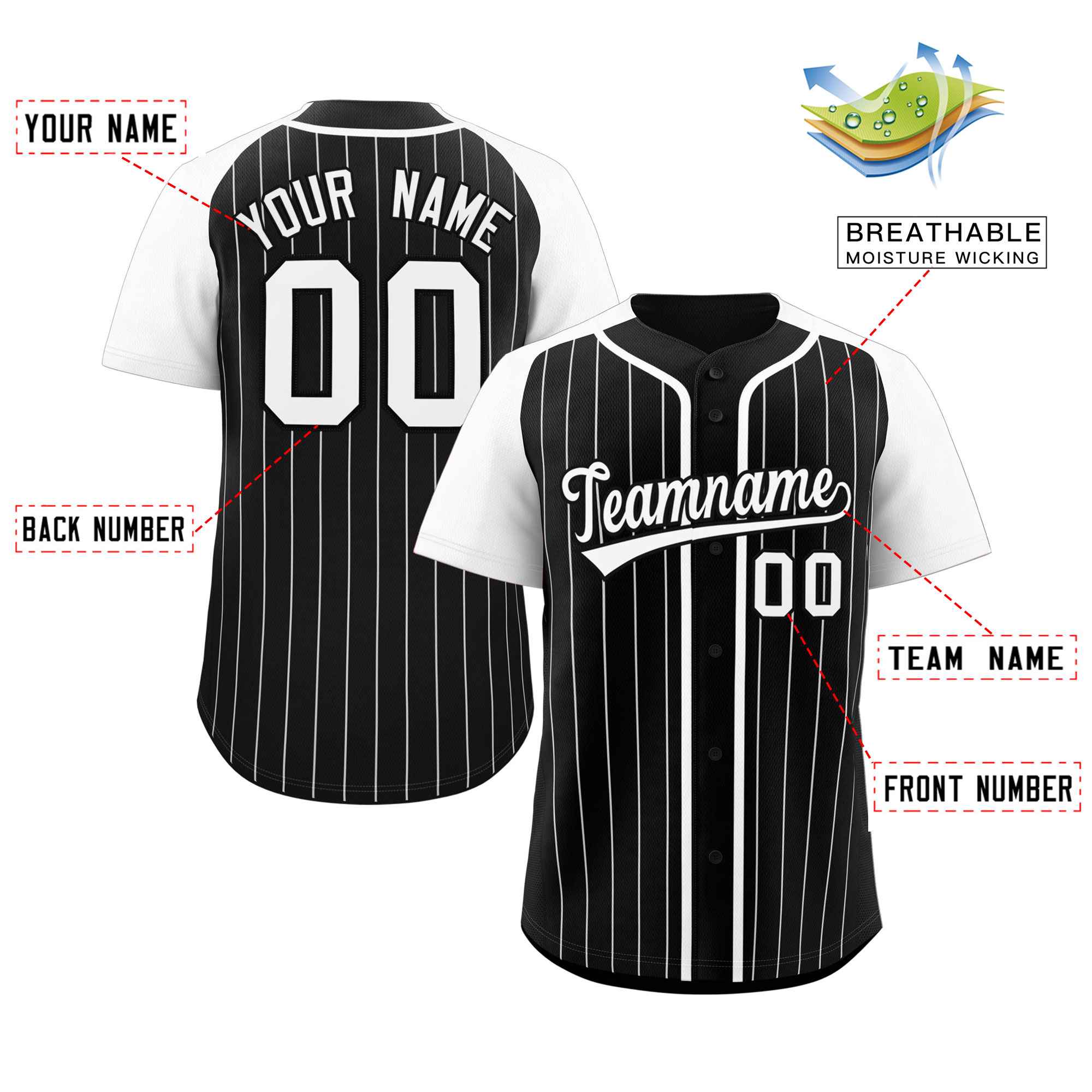 Custom Black White Stripe Fashion Raglan Sleeves Authentic Baseball Jersey