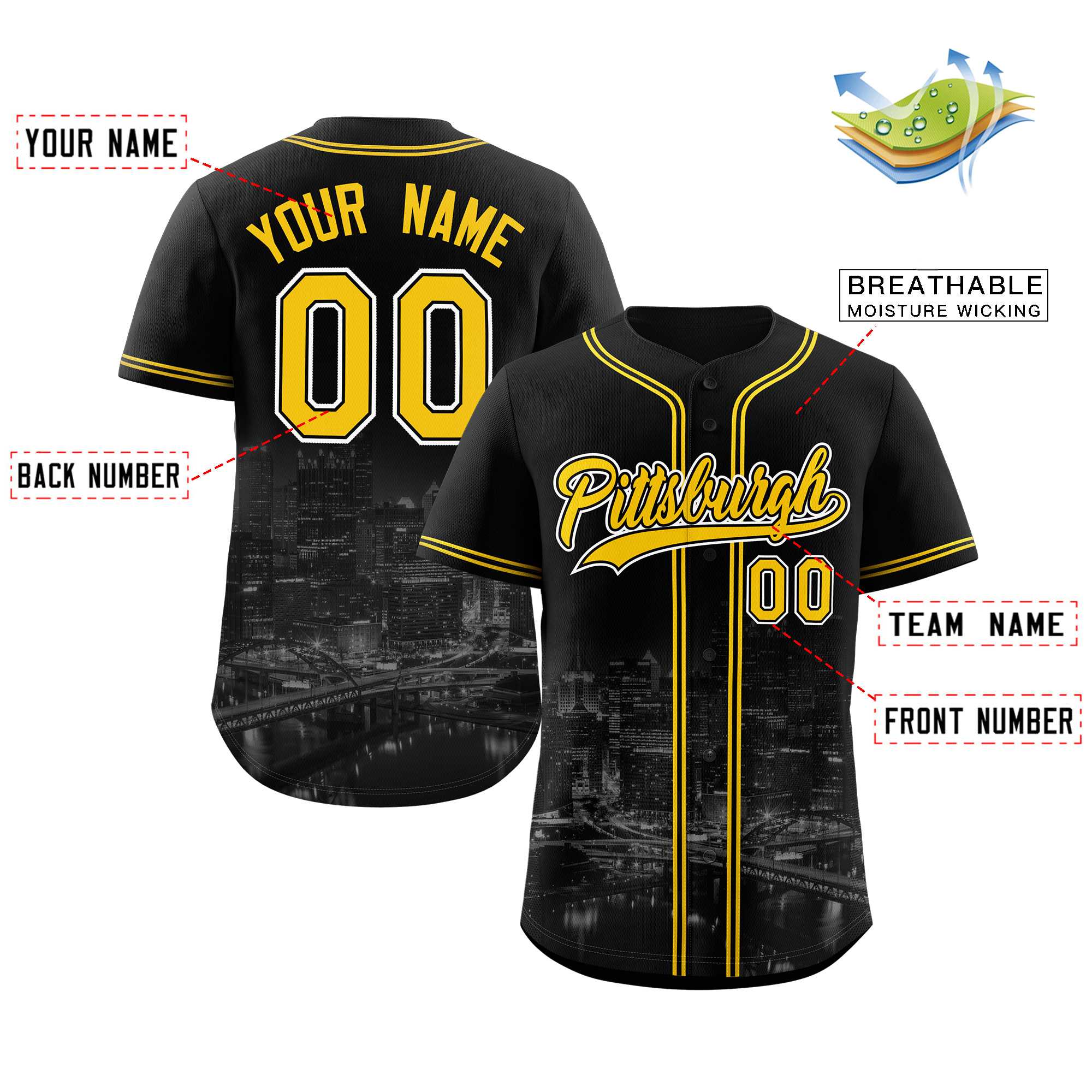 Custom Black Yellow-Black Pittsburgh City Connect Baseball Jersey