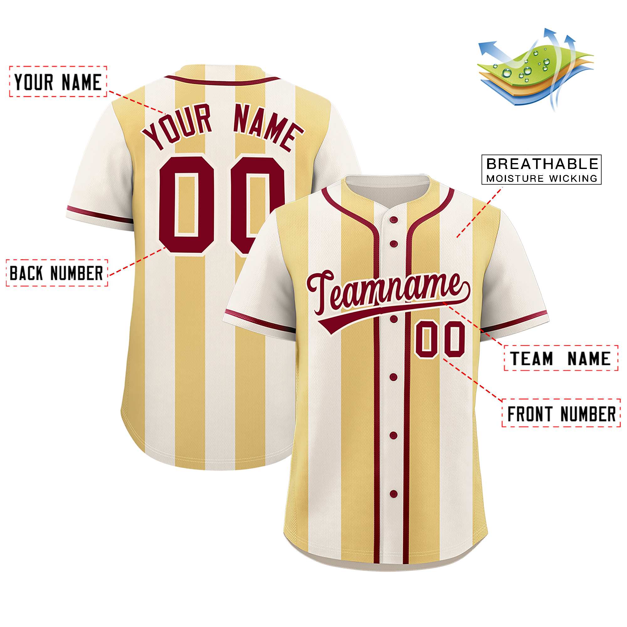 Custom Cream Khaki Thick Stripe Fashion Authentic Baseball jersey