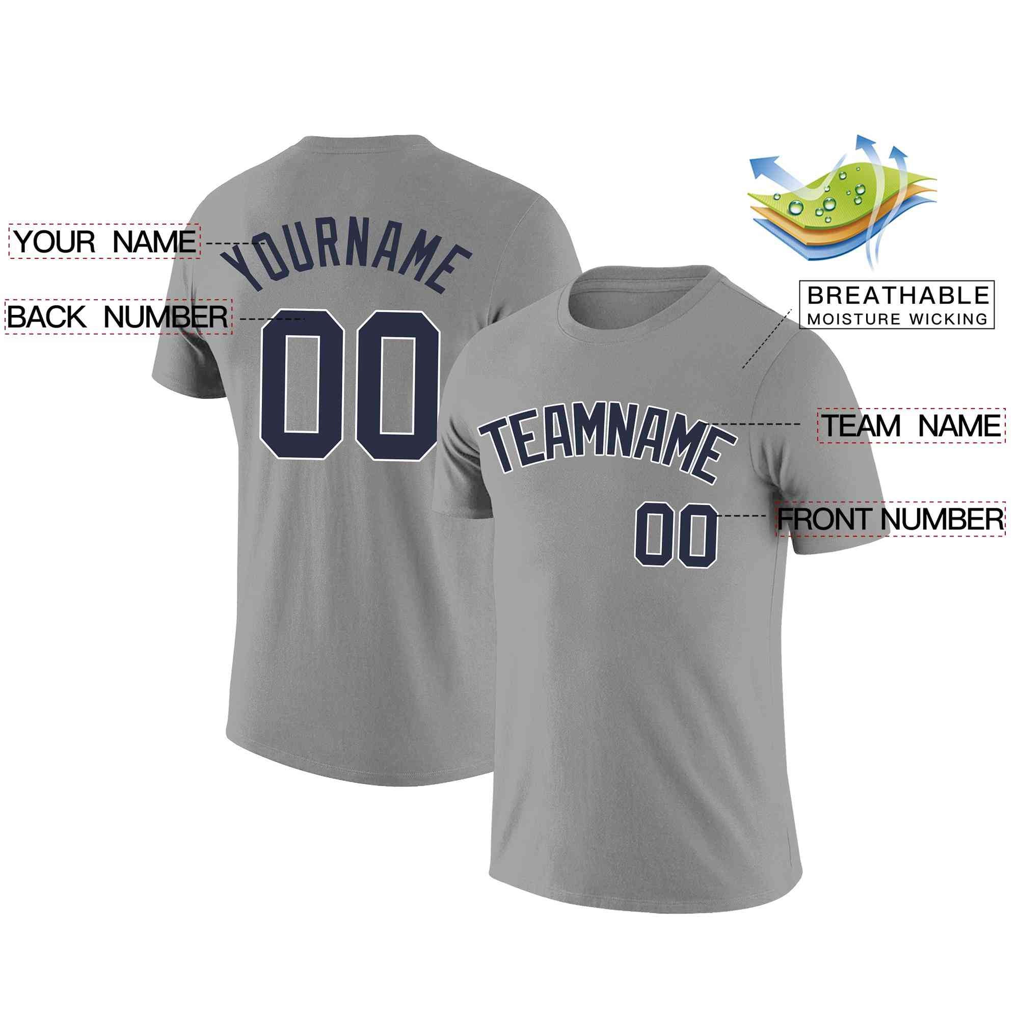 Custom Gray Navy-White Classic Style Crew neck T-Shirts Full Sublimated