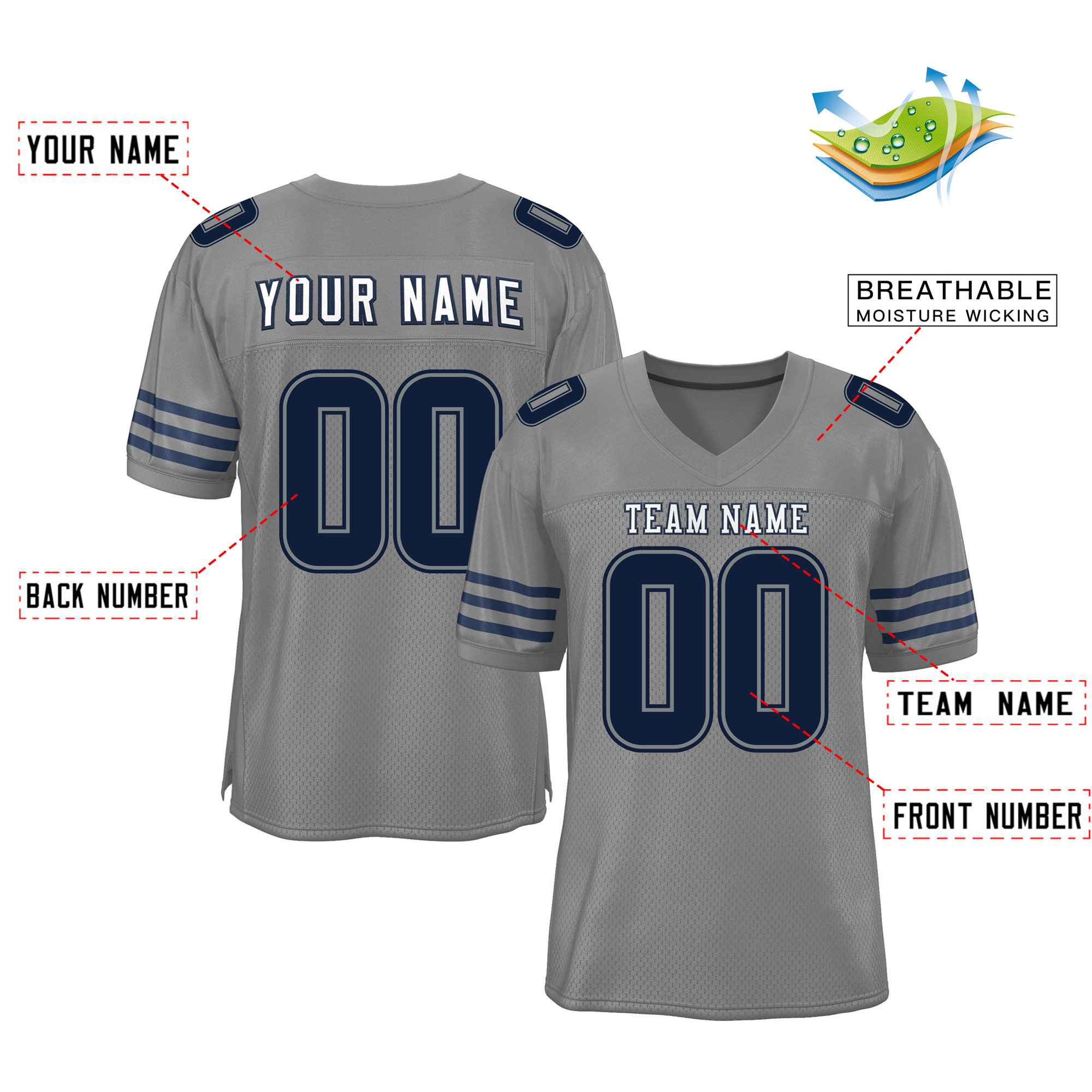 Custom Gray Navy-White Classic Style Mesh Authentic Football Jersey