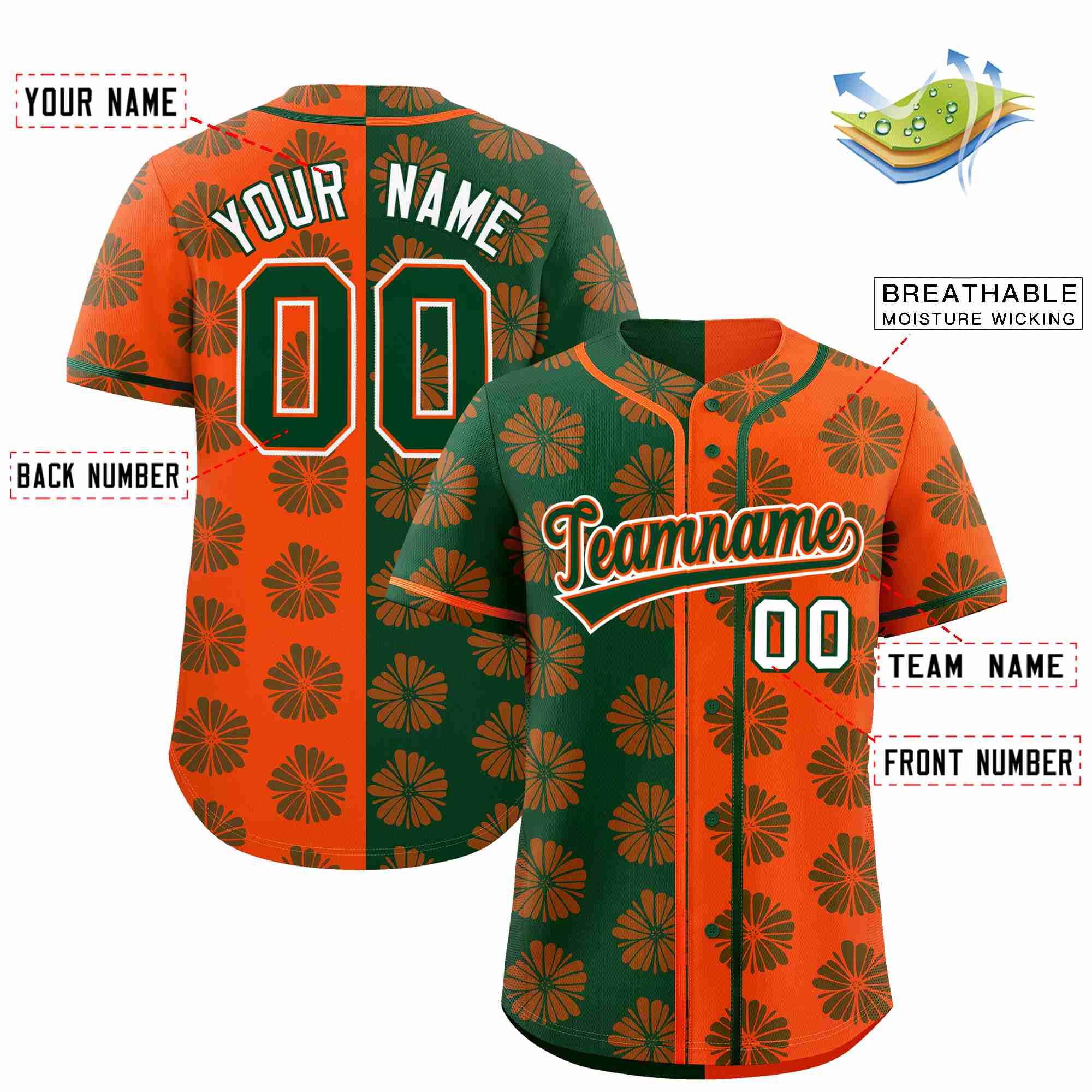 Custom Green Orange Split Fashion Flower Graffiti Pattern Authentic Baseball Jersey