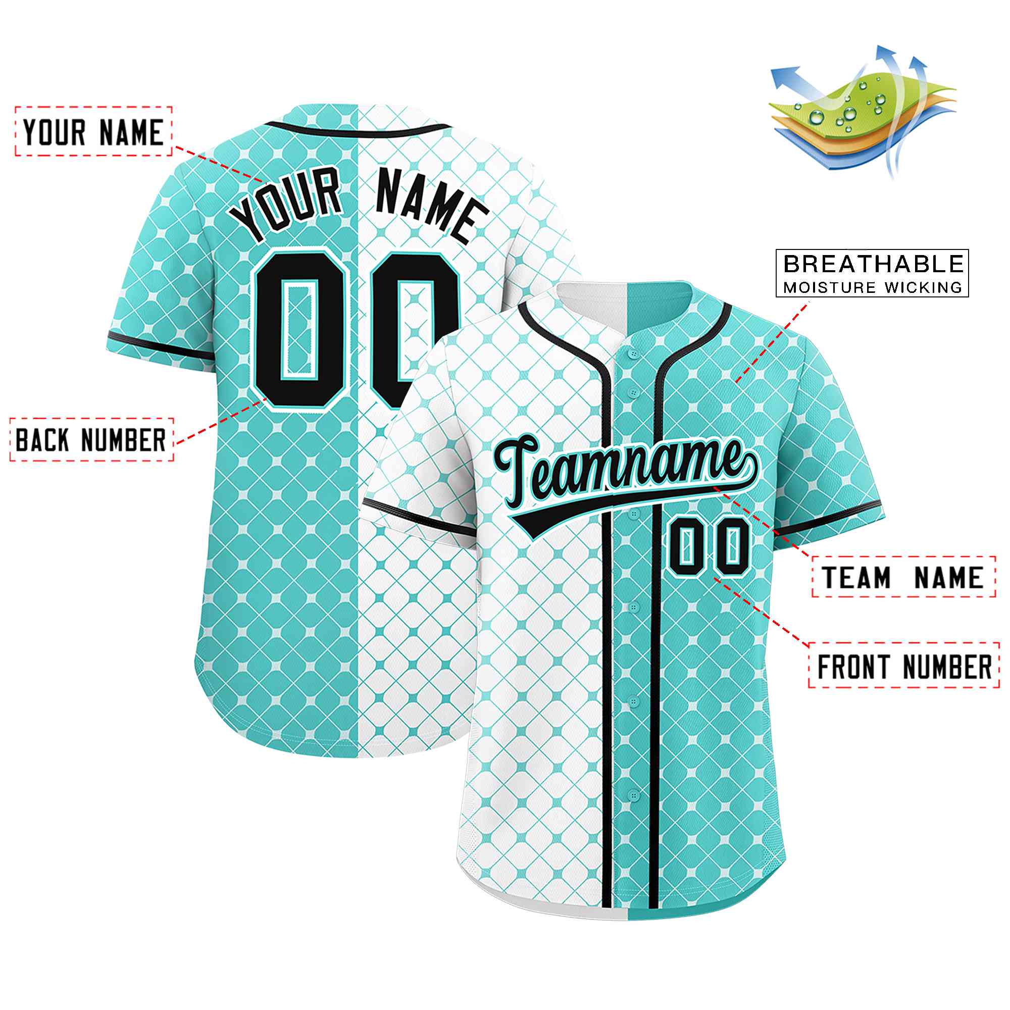 Custom White Bright Green Split Fashion Plaid Design Authentic Baseball Jersey