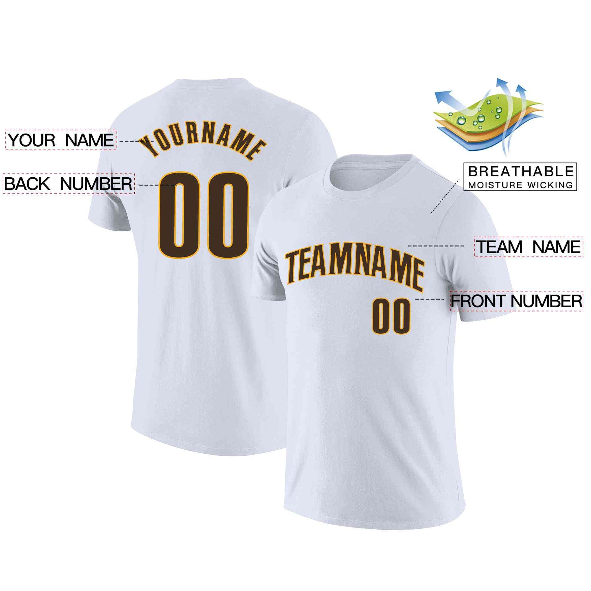 Custom White Brown-Yellow Classic Style Crew neck T-Shirts Full Sublimated