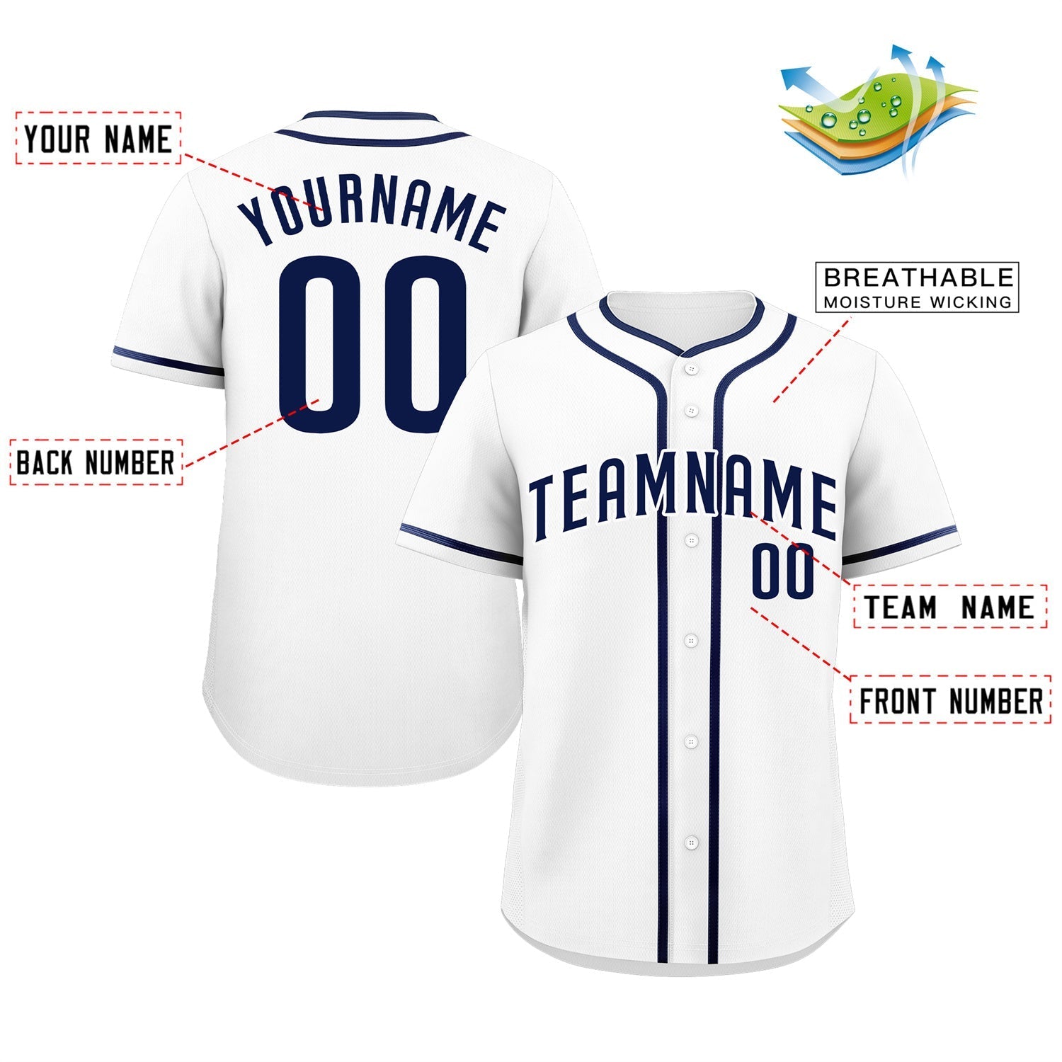 Custom White Navy-White Classic Style Authentic Baseball Jersey
